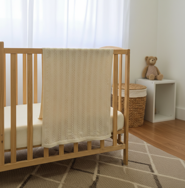 Make a statement with the delicate and detailed Vintage Knitted Blanket. Inspired by classic pointelle artistry, this pattern features intentional, tiny eyelet gaps that create elegant vertical tracks of intricate, lace-like detail. This open-stitch design is officially our most breathable knit, making it the perfect year-round companion—keeping you cosy in the winter without overheating in the summer. It’s a graceful, light-catching keepsake that adds a touch of “quiet luxury” to any room it’s in.