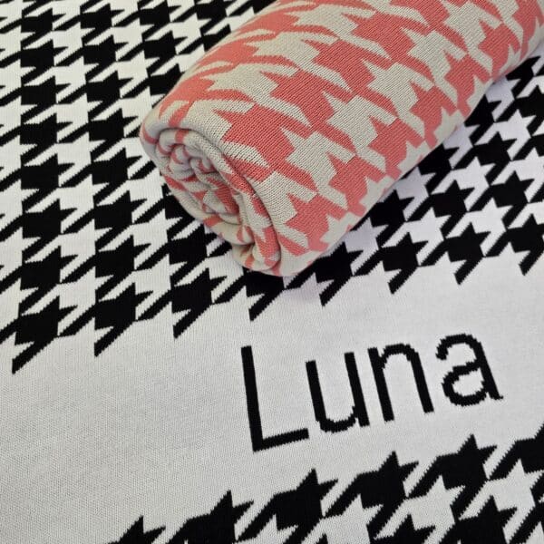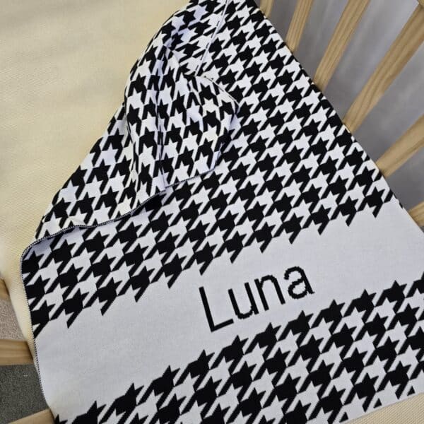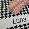The Custom Houndstooth Blanket is a charming and cosy addition to any nursery or home. Crafted with love, these knitted blankets are made from 100% soft cotton, ensuring ultimate comfort. Personalise your blanket by selecting two colours from our palette of 40 beautiful shades and adding a name in one of our 19 stylish fonts.